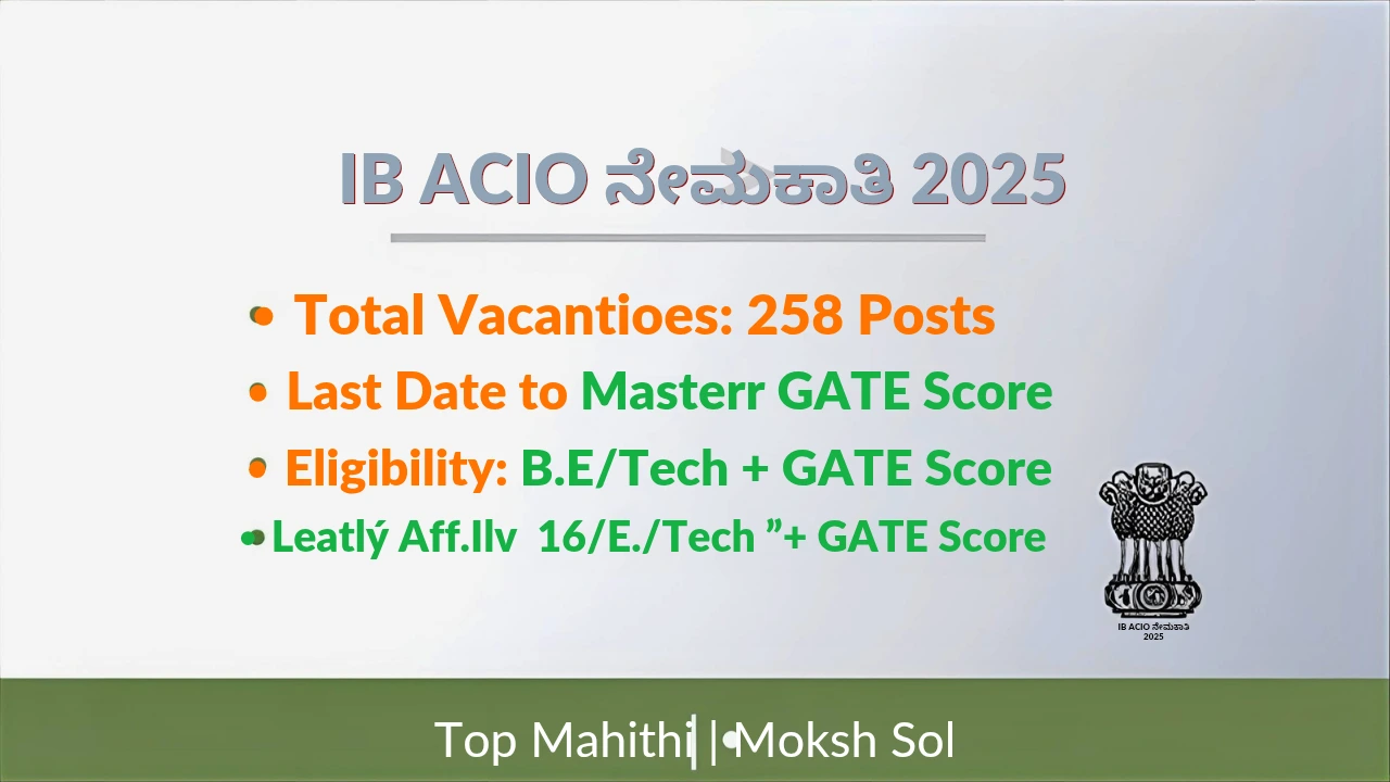 IB ACIO ನೇಮಕಾತಿ 2025 – 258 ಹುದ್ದೆಗಳ ಅಧಿಕೃತ ಪ್ರಕಟಣೆ