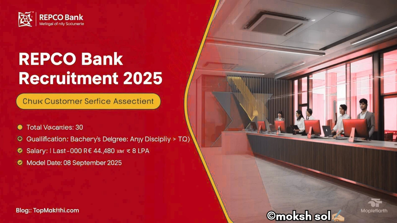 REPCO ಬ್ಯಾಂಕ್ ಕ್ಲರ್ಕ್ ನೇಮಕಾತಿ 2025 – 30 Customer Service Associate ಹುದ್ದೆಗಳು REPCO ಬ್ಯಾಂಕ್ ಕ್ಲರ್ಕ್ ನೇಮಕಾತಿ 2025 – Customer Service Associate ಹುದ್ದೆಗಳು ಭಾರತ ಸರ್ಕಾರದ ಅಂಗ ...