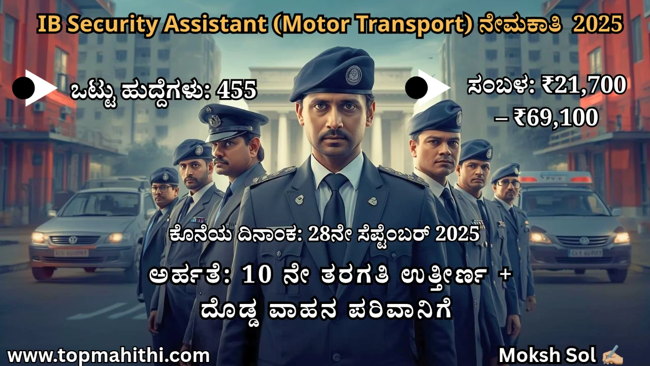 IB Security Assistant (Motor Transport) ನೇಮಕಾತಿ 2025 – 455 ಹುದ್ದೆಗಳಿಗಾಗಿ ಆನ್ಲೈನ್ ಅರ್ಜಿ ಸಲ್ಲಿಸಿ
