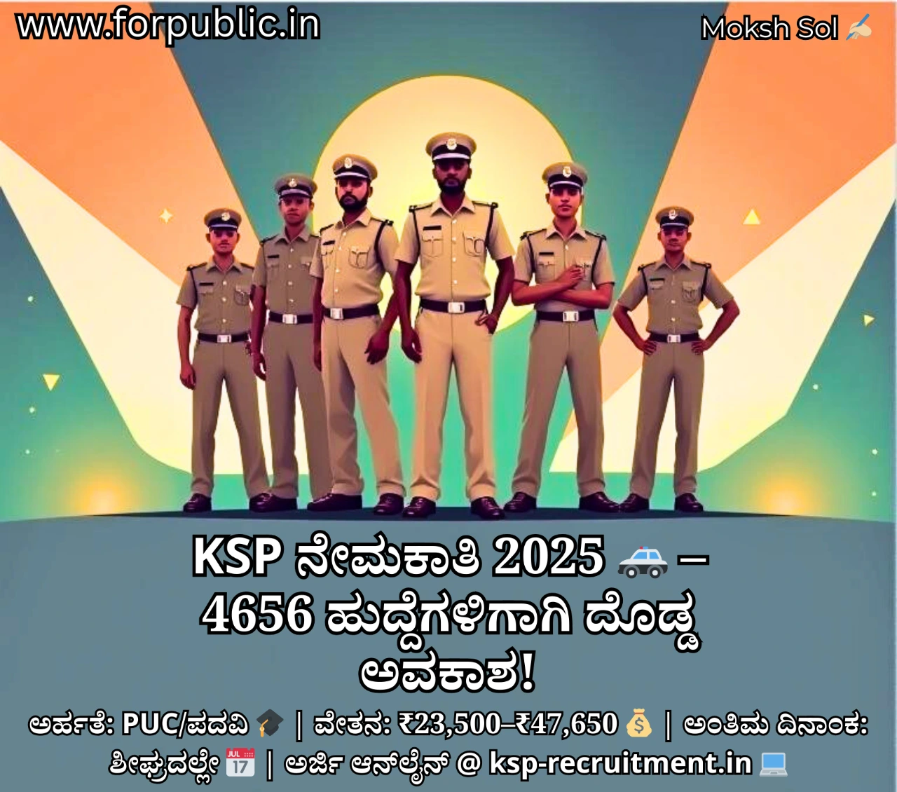 KSP ನೇಮಕಾತಿ 2025 – 4656 ಪೊಲೀಸ್ ಕಾನ್ಸ್ಟೇಬಲ್ ಮತ್ತು ಸಬ್-ಇನ್ಸ್ಪೆಕ್ಟರ್ ಹುದ್ದೆಗಳು | ಕರ್ನಾಟಕ ಪೊಲೀಸ್ ಉದ್ಯೋಗ